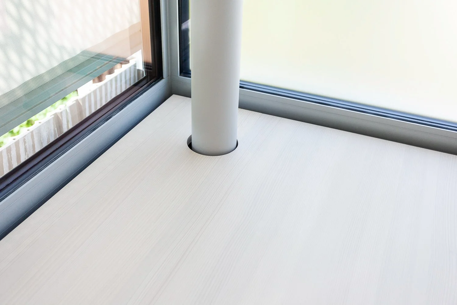 Bei der Materialwahl haben wir überwiegend auf Dreischicht-Massivholzplatten gesetzt. Die Türen und die hohen Einbauschränke bestehen aus gedecktem weißen, matten HPL (High Pressure Laminate, ein hochwertiger und belastbarer Verbundwerkstoff), das über die Eiche-Massivholzumleimer furniert wurde.