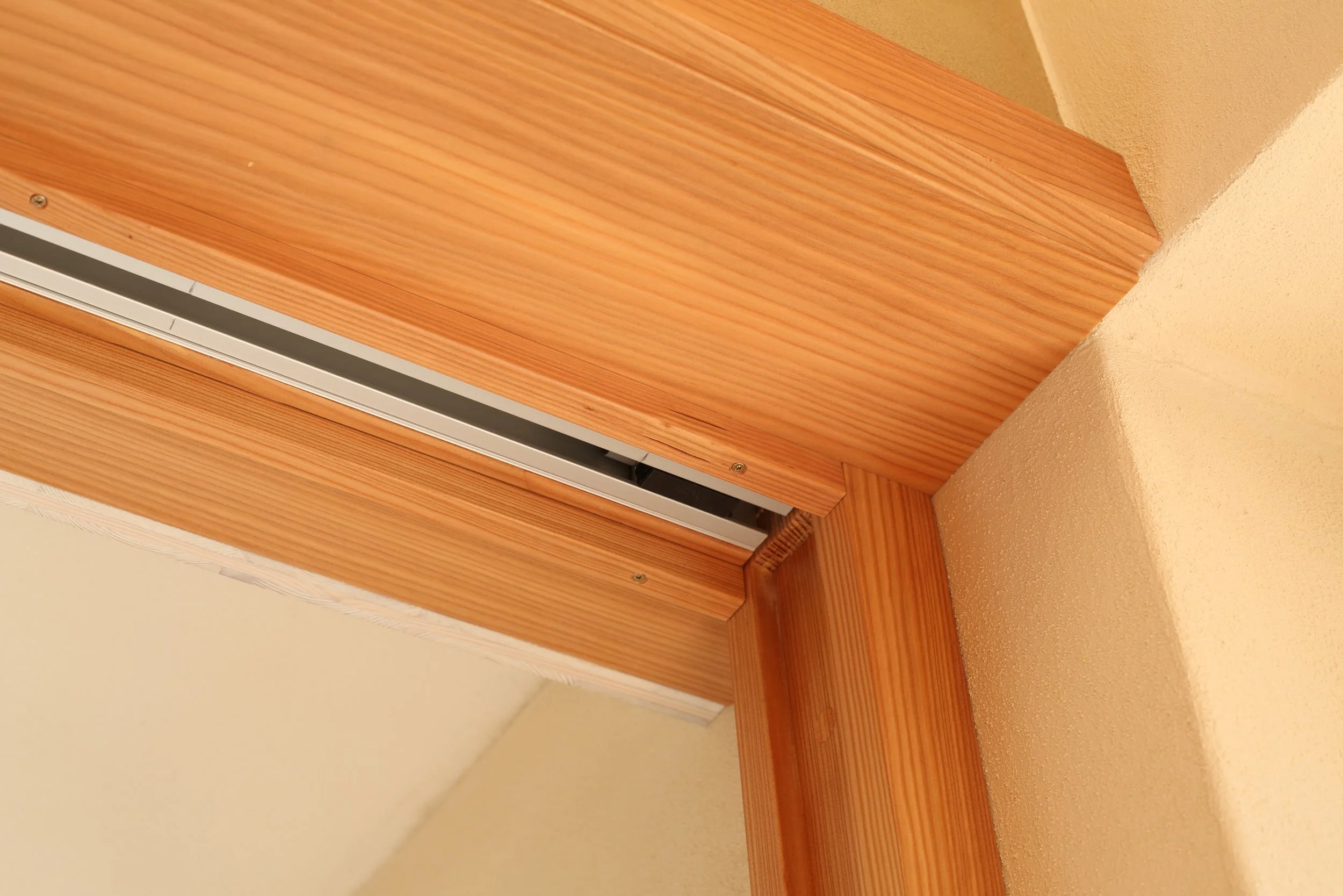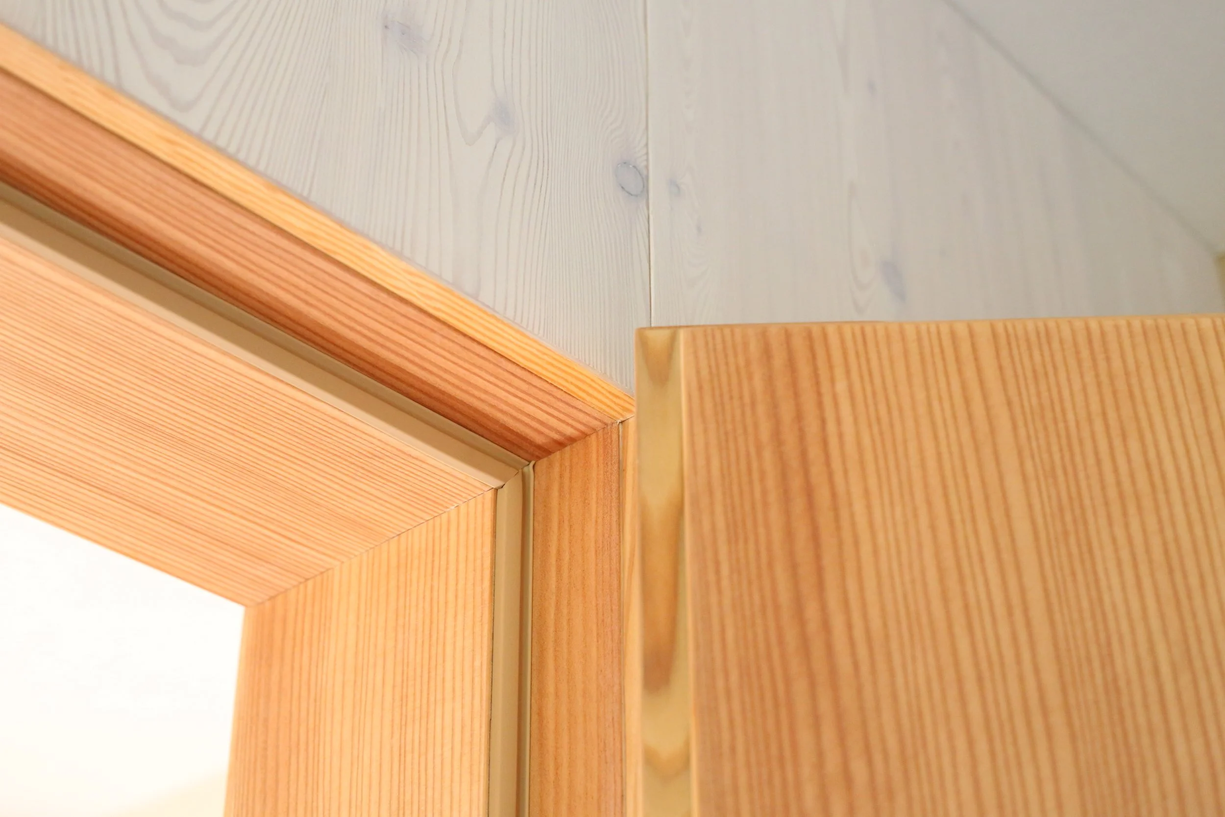 Türen aus Lärche-Starkfurnier, Kern aus Lärche-Dreischichtplatte.